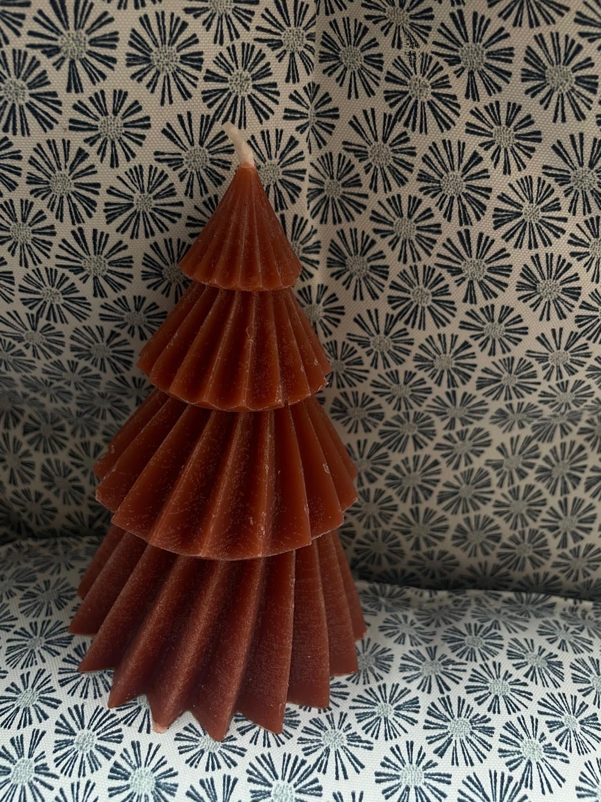 Ručně odlévaná svíčka ve tvaru stromečku v hřejivě hnědé barvě.