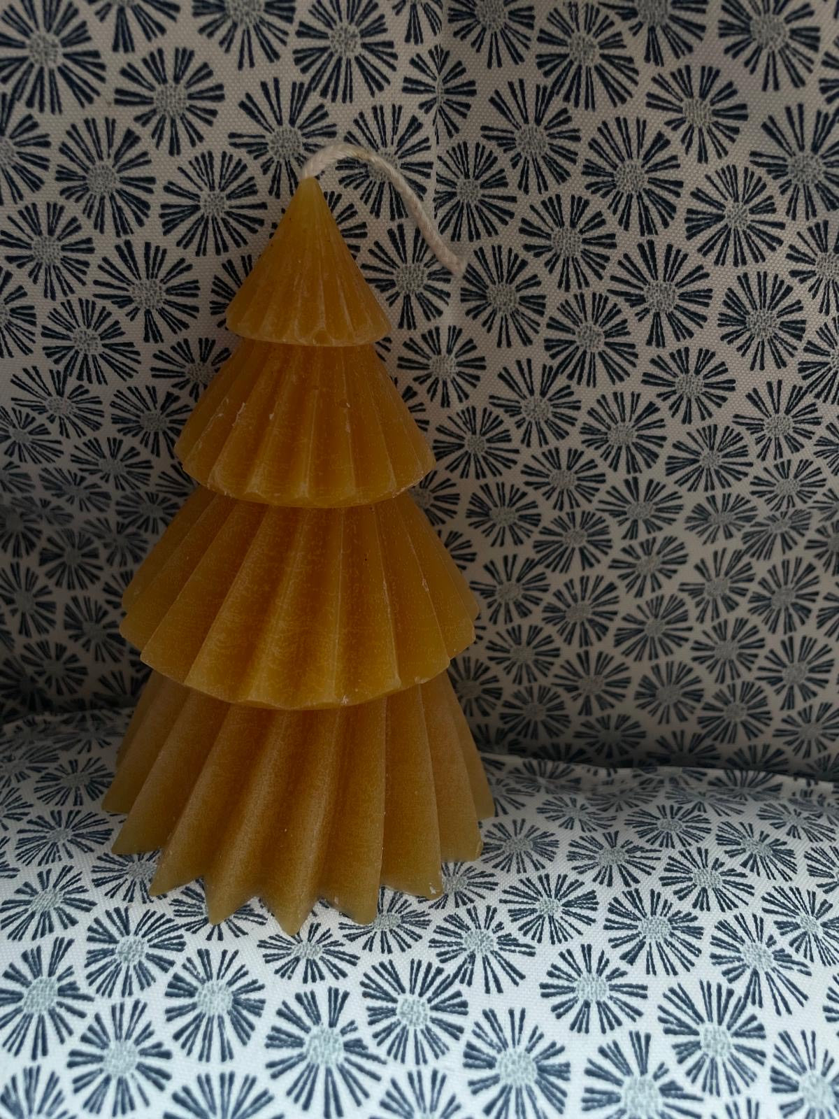 Ručně odlévaná svíčka ve tvaru stromečku v jemné žluté barvě.